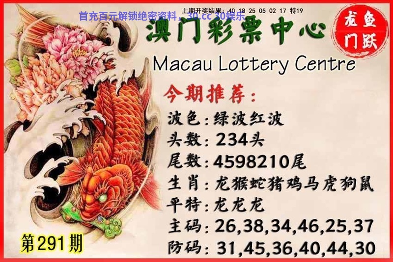 291期澳门彩票中心开狗44 波色:绿波红波 头数:234头 尾数:4598210尾 生肖:龙猴蛇猪鸡马虎狗鼠 主码:26,38,34,46,25,37 防码:31,45,36,40,44,30 |